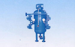 压力式滤盐器又称盐溶解器。是制备钠离子交换器还原需用盐溶液过滤用的。在滤盐的底部设有排水盘和石英砂滤层。制备盐溶时,先将盐装入滤盐器内,用具有压力的水通过食盐和石英砂过滤层过滤。经过过滤的盐水,从下部出水管引出。